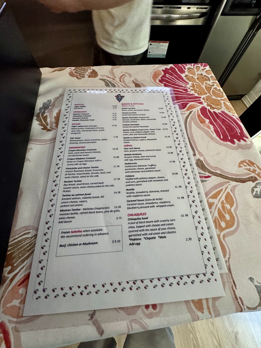 Huitlacoche (Mexican Truffles), Gruyere cheese, poblano sauce, Heirloom tomatoes on the side.